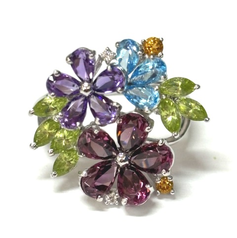 リング K18 ペリドット ブルートパーズ アメシスト他 MD0.02 6.3gをお持ち頂きました。