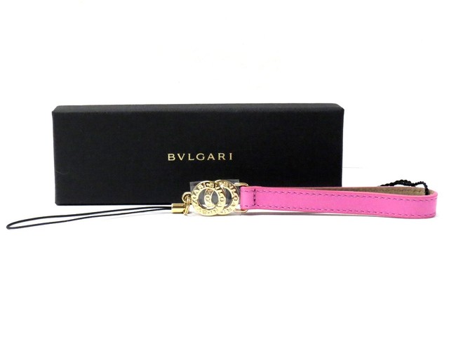 BVLGARI ブリガリ 携帯ストラップ ゴールド ピンク レザーをお持ち頂きました。